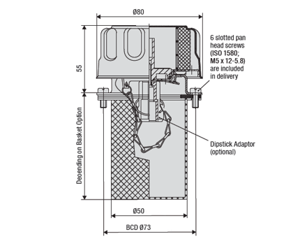 Fest á tank með 6 bolta flansi skv. DIN 24557-2.