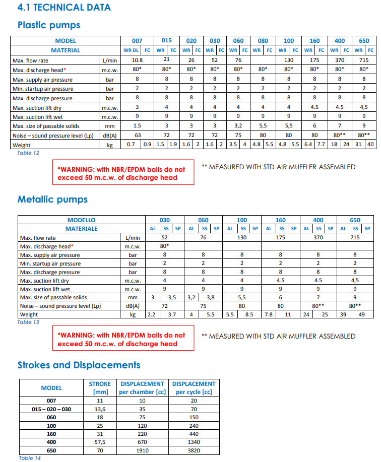 Efni í þindum: Santoprene og PTFE þind (membru)