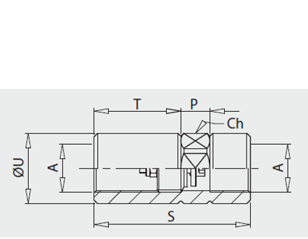 | Hús M/F | A BSP | R mm | P mm | T mm | U mm | Ch | ||||||