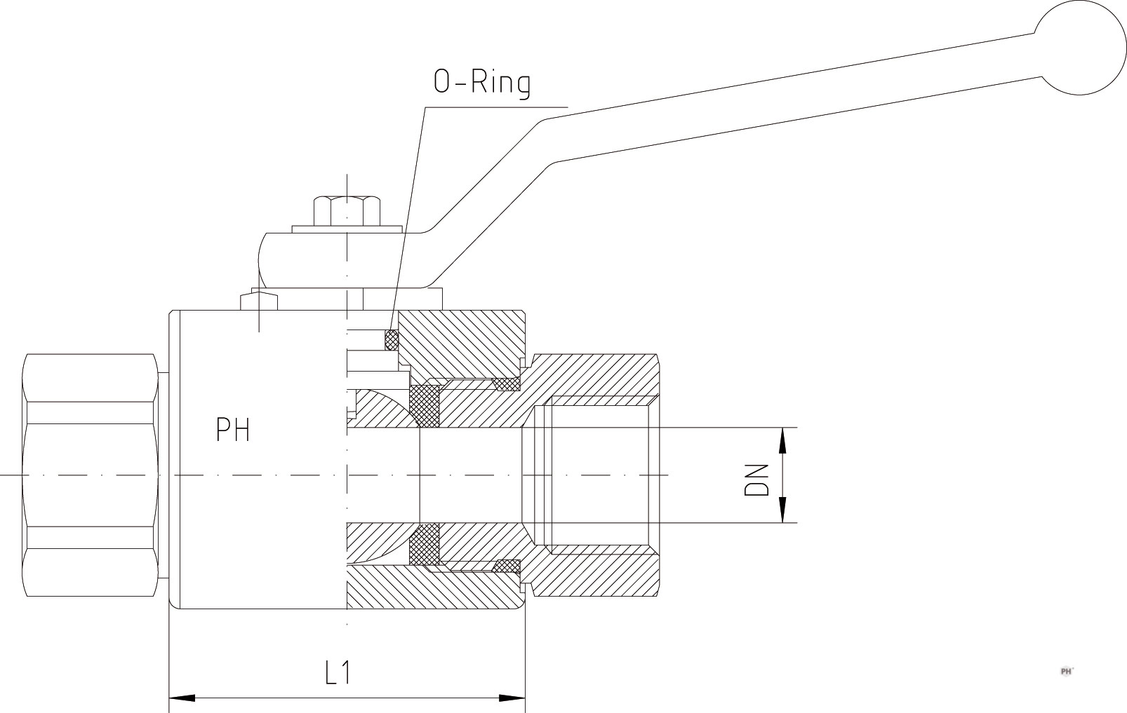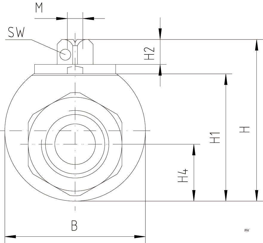 | Vöruheiti | DN | Þrýstiþol BAR | Gengjur í loka G BSP | Utanmál B mm | Hæð H mm | i mm | Lengd L mm | Lykilmál á loka SW | Vörunúmer |