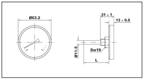 Hitamælir 0-120°C 1/2" BSP