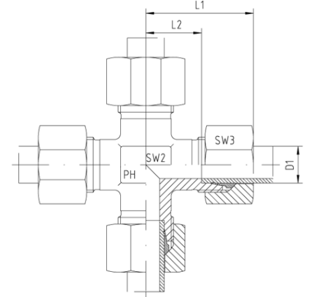 | Vöruheiti | Þvermál rörs D | Hæð L1 mm | Hæð L2 mm | Lykilmál SW2 | Þrýstiþol BAR | Vörunúmer |