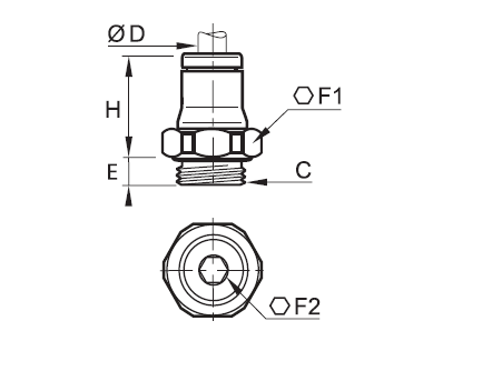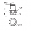 | Vöruheiti | Rörastærð D mm | Gengjur C BSP/M | Hæð E mm | Lykilmál F1 | Sexkant mál F2 | Hæð H mm | Vörunúmer |