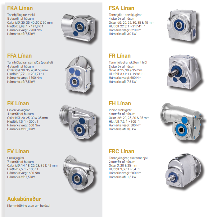 og þrif að gera. Gírarnir eru úr hágæða rafpóleruðu ryðfríu stáli, AISI 316 og öxlar úr Duplex 2205 ryðfríu stáli.