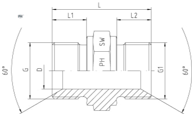 | Vöruheiti | Gengjur G/G1 BSP | Hæð L mm | Hæð L1/L2 mm | Gegnumborun D mm | Lykilmál SW1 | Þrýstiþol BAR | Vörunúmer |