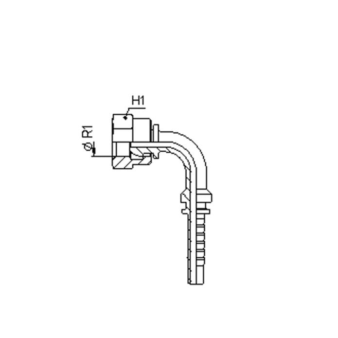 90° slöngutengi með 60° þéttisæti og BSP ró.
