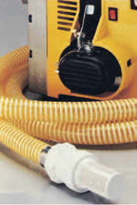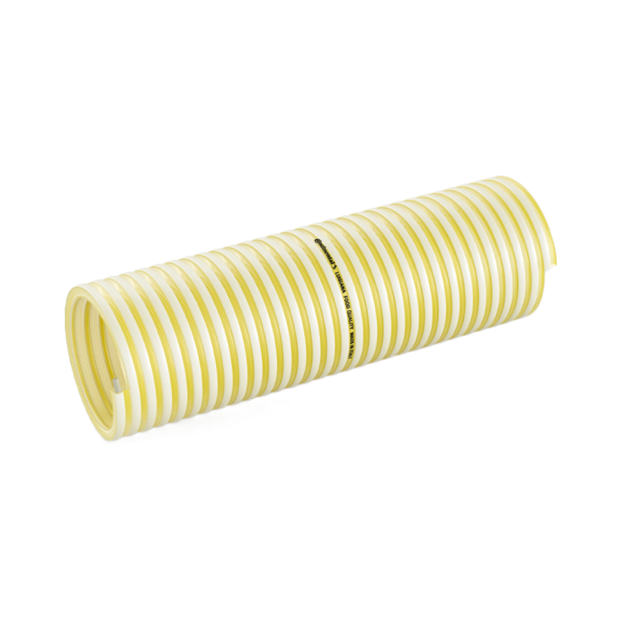 Fjölhæfur PVC sog- og þrýstibarki með PVC spíral, gegnsær, gulur/glær.
