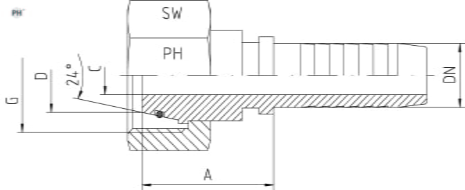 | Vöruheiti | Slöngustærð DN | Slöngustærð " | Gengjur G mm | Utanmál rörs D mm | Hæð A mm | Innanmál tengis C mm | Lykilmál SW | Vörunúmer |