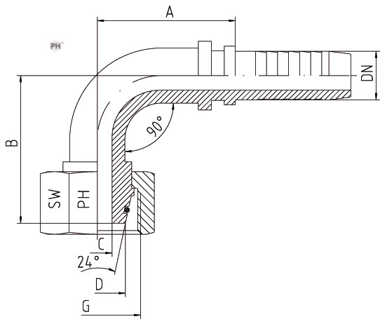 | 90° tengi 1/2″x16S | 12 | 1/2 | 24 x 1,5 | 16 | 44 | 45.5 | 9.5 | 30 | 82494008 |