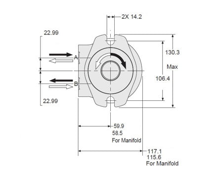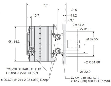 | Vöruheiti | Stærð cc | Rúmtak cm3/sn | Hámarks hraði sn/mín | Hámarks flæði l/mín | Hámarks þrýstingur BAR | Hámarks tork Nm | Hámarks afköst kW | Lengd L mm | Vörunúmer |