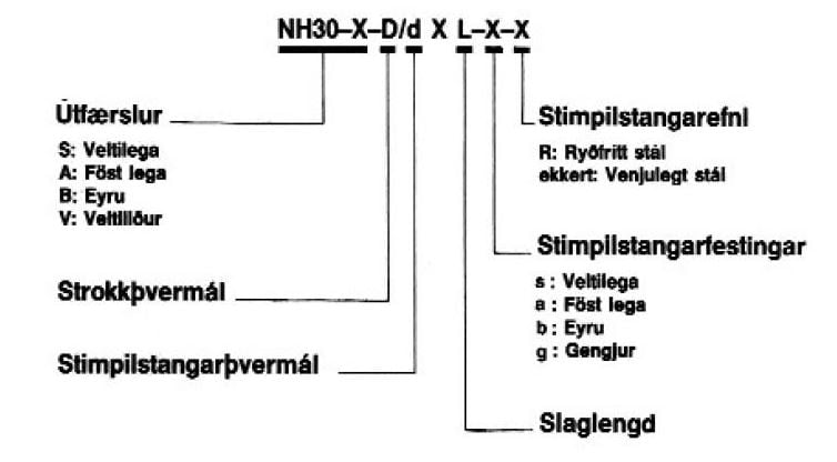 Allir glussatjakkar eru sérsmíðaðir eftir þörfum viðskiptavinarins hverju sinni. Þegar tjakkur er pantaður þarf að gefa upp strokkþvermál hans, slaglengd og gerð endafestinga, auðvelt er að nota myndina hér fyrir neðan sem leiðarvísi þegar tjakkur er pantaður. Mismunandi gerðir endafestinga má sjá hér.